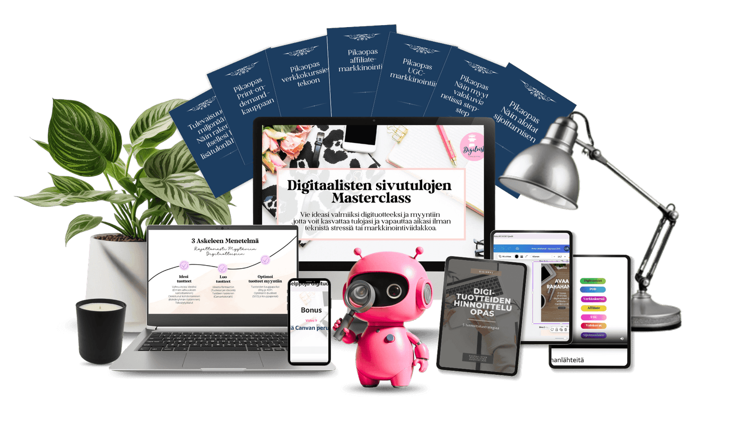 Saat Digitaalisten sivutulojen Masterclass Pro-valmennuskokonaisuuden nyt erityishintaan 399€.