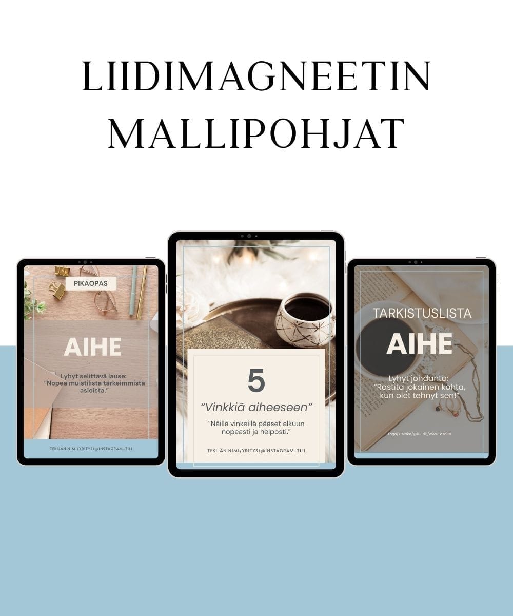 Saat käyttöösi kolme muokattavaa mallipohjaa, joiden avulla liidimagneetin toteutus on nopeaa: