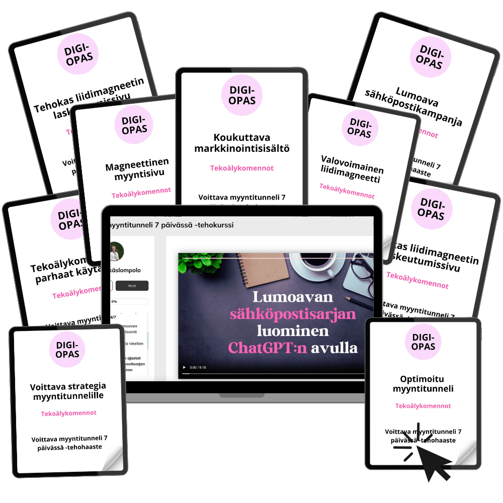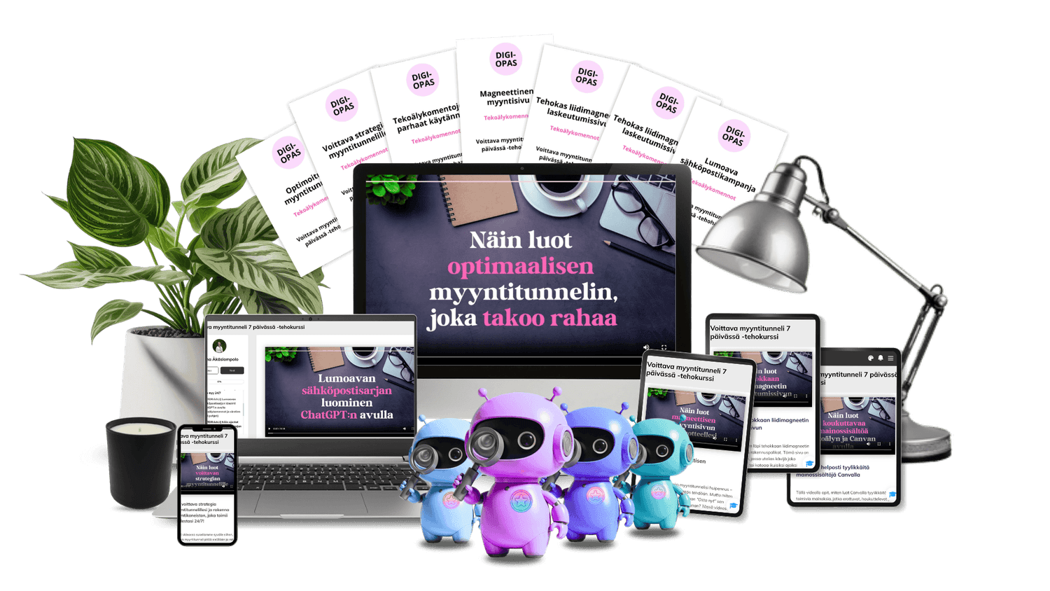 Tekoälyapurit ovat mahdollistaneet mulle mun verkkokurssien myynitunnelien ennätysnopean rakentamisen. Tämä on ollut täydellinen pelastus äitiyrittäjän arjessa, jossa työaikaa omalle bisnekselle on niukasti.