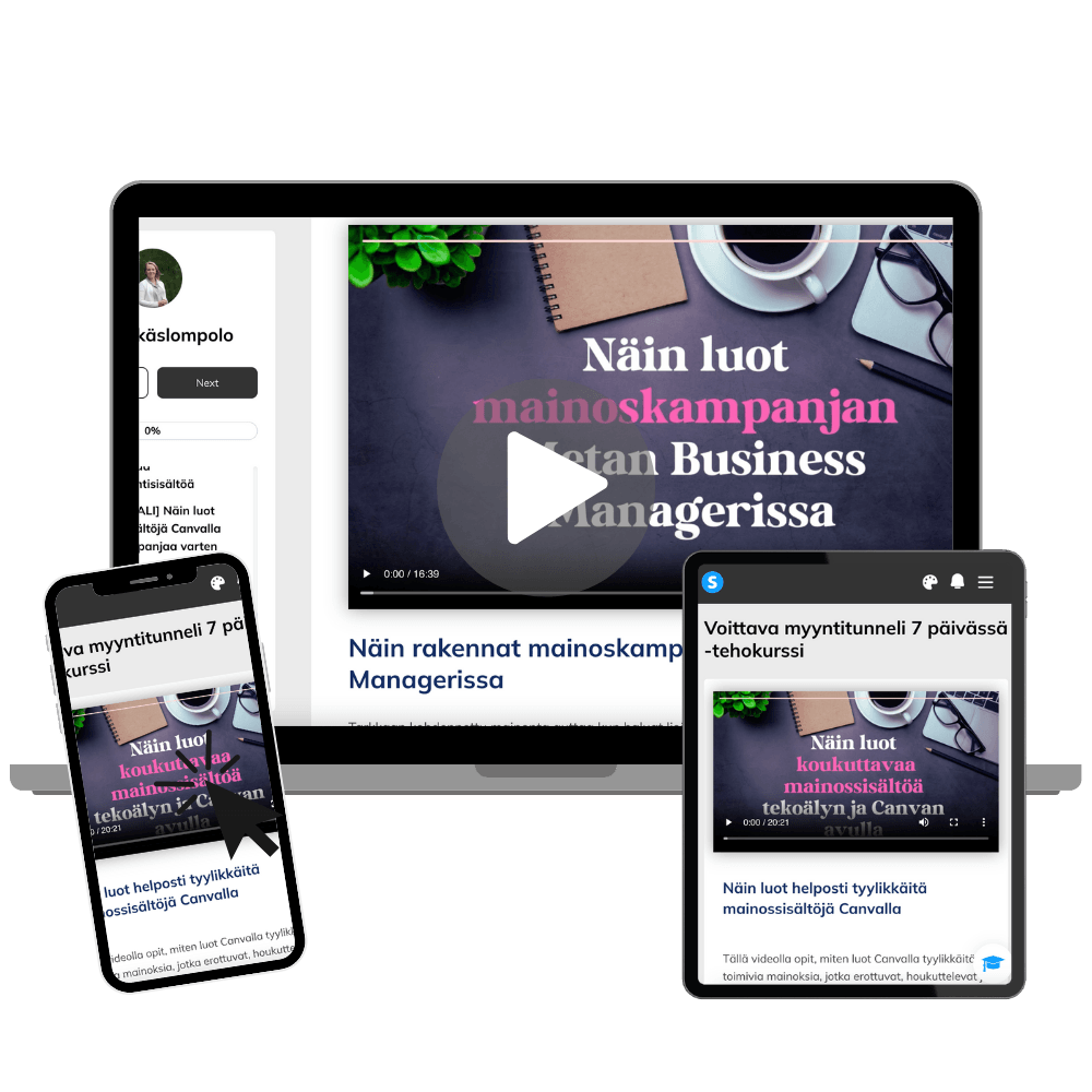 Ei hätää! Saat kurssisisällöt elinikäisellä pääsyllä ja voit palata niihin milloin haluat.